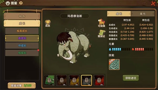 玛恩摩洛斯的生命成长最高为2.4,骑乘后可以显著提高角色的承伤能力,有效为角色分担伤害。